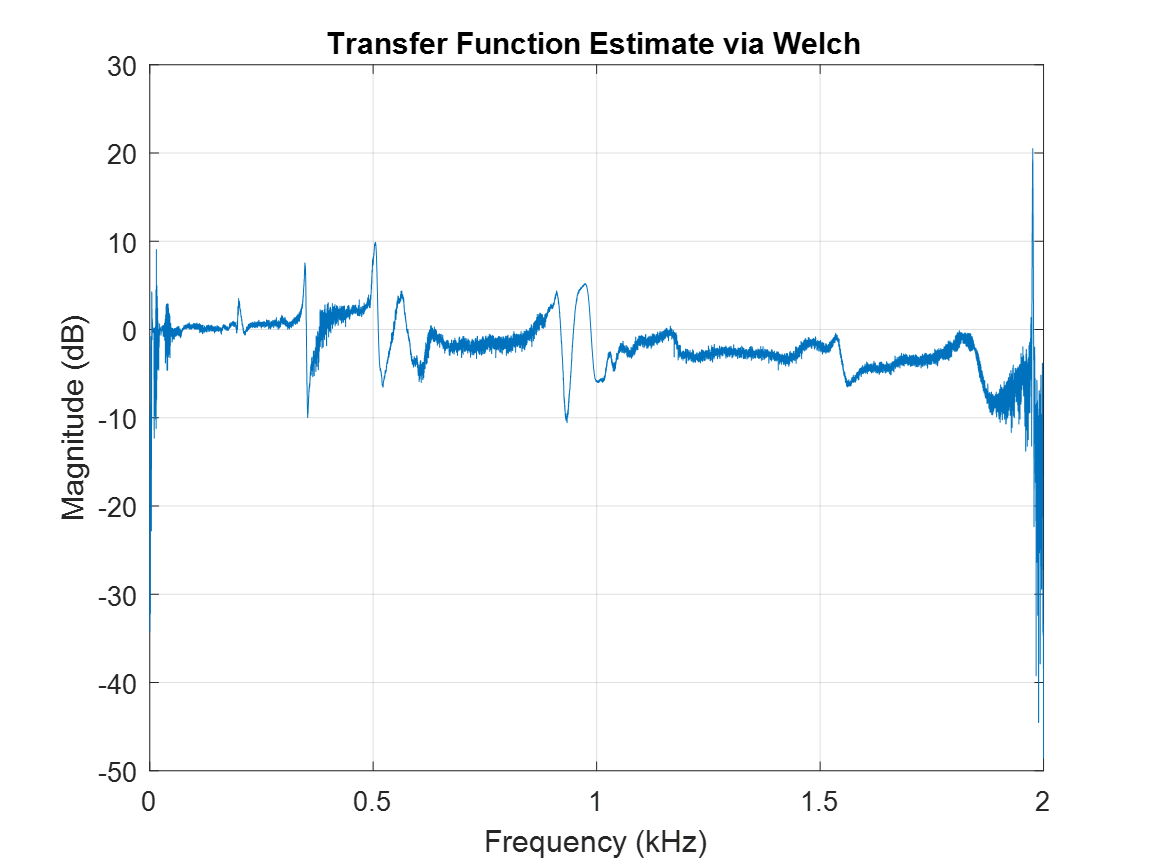 Transfer function estimation by Welch’s method computed in Matlab using the tfestimate() function.